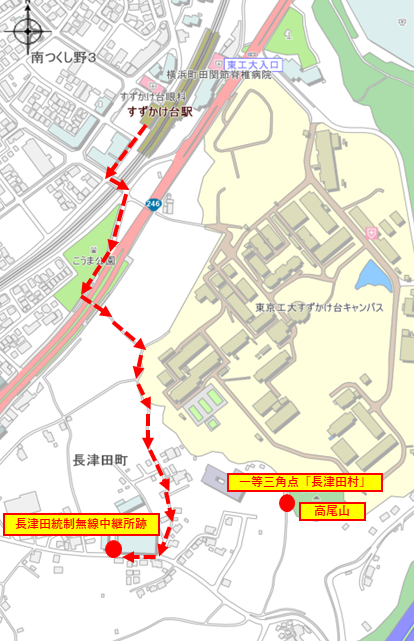 横浜市緑区長津田町5724番(長津田統制無線中継所の跡地) ※現地に説明パネルがあります。