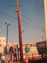空襲を伝えた木柱は、昭和31年12月の長津田統制無線中継所廃局後、長津田辻自治会に引き継がれ、火の見半鐘の木柱として再利用されました。