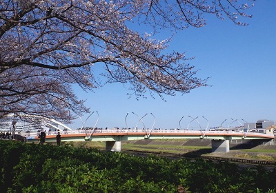 鴨池橋と鶴見川の桜並木