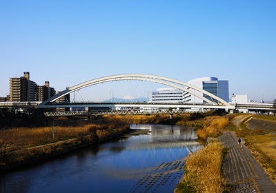 鴨池大橋のアーチ越しの富士山