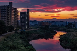 「鶴見川の夕景」三浦 富雄/コメント:映える夕陽を撮影しました。/横浜市緑区フォトアーカイブ/ CC BY 4.0(外部サイト) |