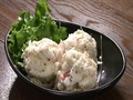 | 1 | ジャガイモを蒸し器または電子レンジで串が通るくらいまで蒸し、厚さ5mmにスライスする |