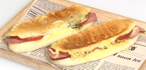| 5 | コッペパンに焼いたベーコンスライス、大葉、トマトをはさむ |