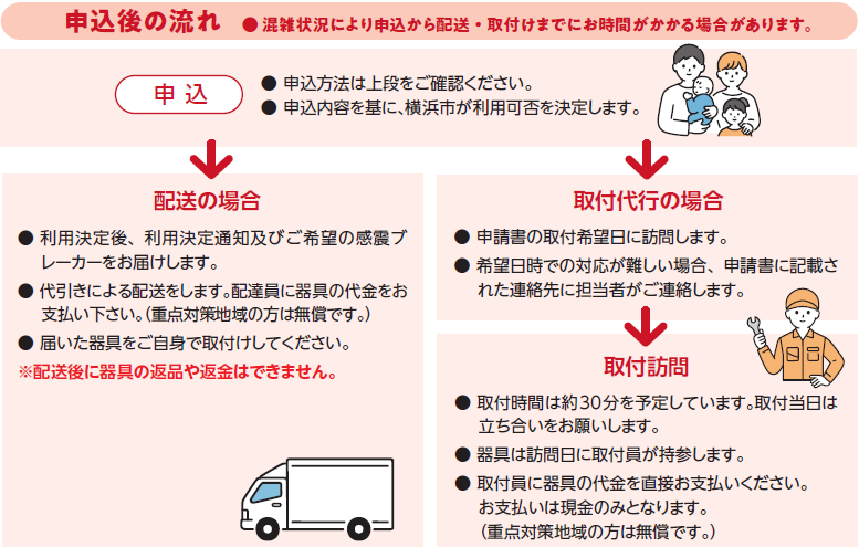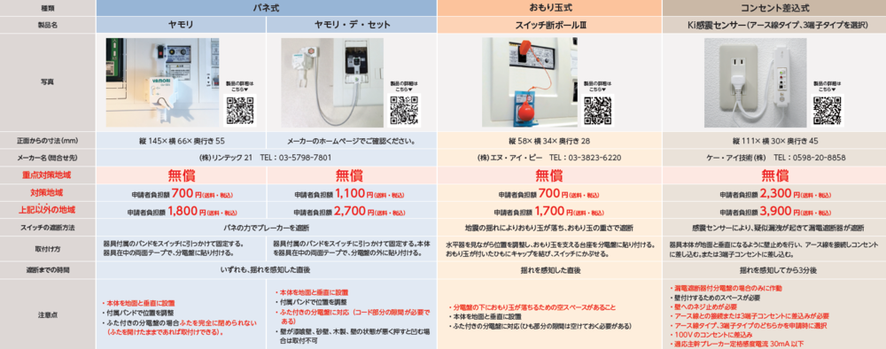 ・ 配送後、感震ブレーカーの返品や返金はできません。また、配送された感震ブレーカーの流用や転売は絶対に行わないでください。