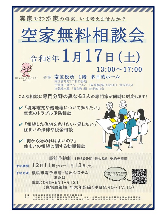 横浜市内に空家を所有している人、市内にある持ち家の相続を予定している人 等