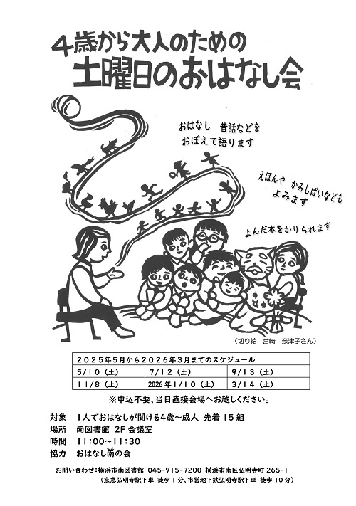 おはなしや昔話を覚えて語ります。絵本や紙芝居なども読みます。