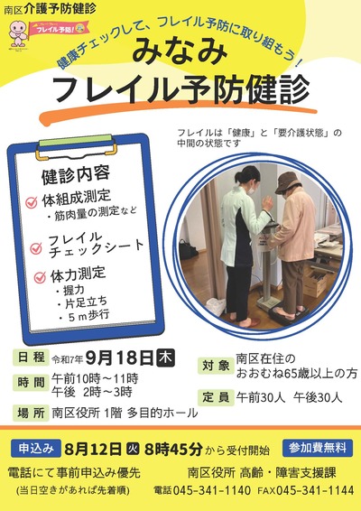 【申込受付を終了しました】みなみフレイル予防健診を受けよう!