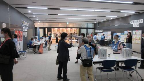 南区保健活動推進員のみなさまにご協力いただき、血管年齢測定やパネル展示、南区地域子育て支援拠点はぐはぐの樹による受動喫煙防止に関するクイズを行いました。