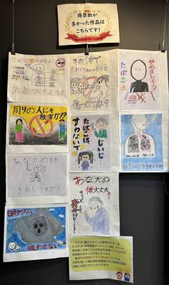 世界禁煙デーイベント&ギャラリー展示にて南吉田小学校6年生が描いた禁煙ポスターを展示させていただきましたが、子ども達が描いたポスターを通してご家庭や地域でもタバコの害や受動喫煙等について考えるきっかけとなったのではないでしょうか。