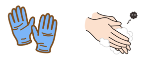 例:オムツ交換時や口腔ケア時、嘔吐物に触れる時は手袋を着用し、触れた後は必ず手洗いをする。