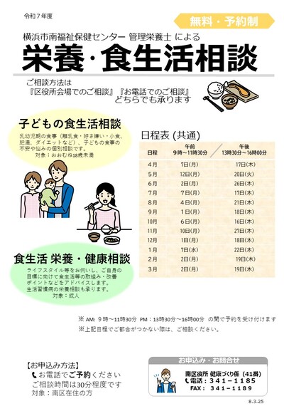 子どもの食生活相談(対象:乳幼児から高校生くらいまでの子の養育者、南区在住の方)
