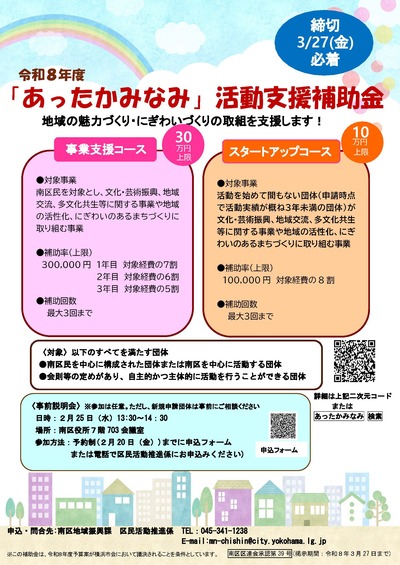 【募集中!】令和8年度「あったかみなみ」活動支援補助金交付団体の募集