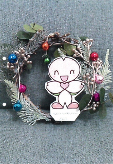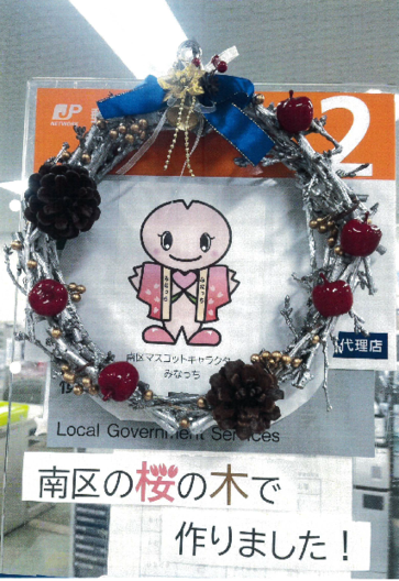 区内の郵便局12局で、剪定枝を活用して制作されたリースです。こちらは、窓口に展示していただきました。