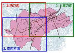 区内を3地域(北西方面、北東方面、南西方面)に分けたものも公開しています。