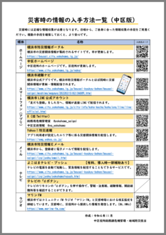 このページでは、災害時の情報の入手方法一覧として、中区での情報収集の方法についてご案内します。