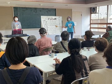 お茶とお菓子を囲んで落語を聞いたり、ミニゲームをしたり、認知症予防のための体操をしたりしています。
