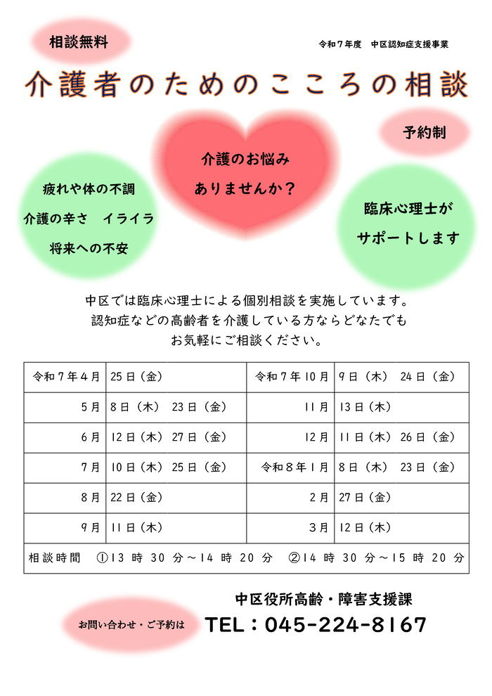 中区R7年度介護者のためのこころの相談チラシ(PDF:290KB)