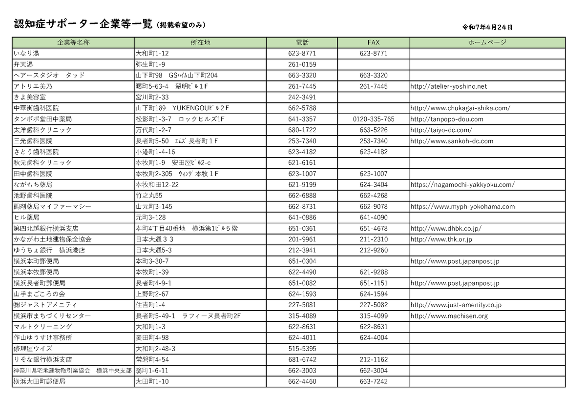 認知症サポーター企業一覧