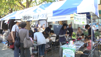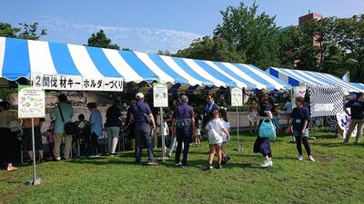 全市統一行動キャンペーンの一環として、青少年健全育成のアピールを行いました。また、「間伐材で作るキーホルダー」の作成コーナーを設けました。