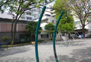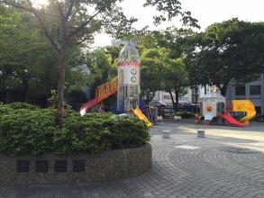 宇宙船をモチーフにした遊具があり、いつもたくさんの子どもたちでにぎわう公園です。