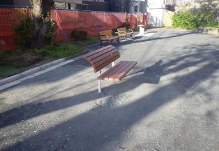 | 1 背伸ばしベンチ | 2 公園の風景 |