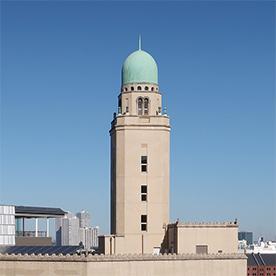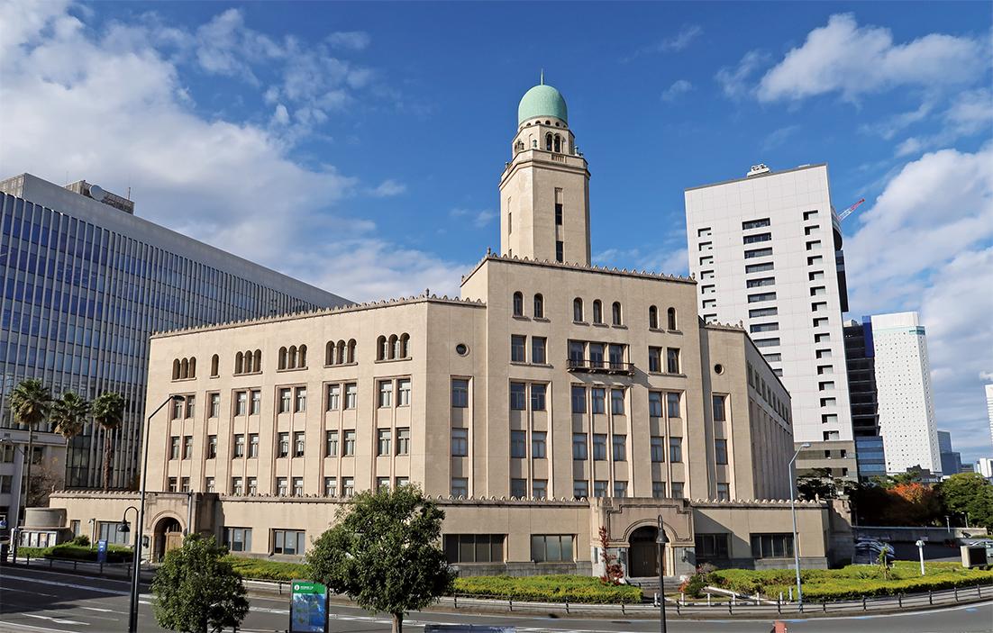 関東大震災で倒壊してしまった4代目庁舎の復興事業として昭和9(1934)年に建てられました。戦時中は横須賀海軍軍需所に併用され、戦後は連合軍総司令部として8年間にわたり接収されていましたことはありますが、建設以降、税関庁舎として使われています。外観は、イスラム寺院風のドームを持つ塔が目を引き、玄関廻りや外壁頂部などに西洋風の細部意匠が施されています。平成15(2003)年には、歴史的建造物の大半を残して改修・増築され、長く使い続けられています。「クイーンの塔」の愛称で親しまれている港町横浜のシンボルの一つとなっています。