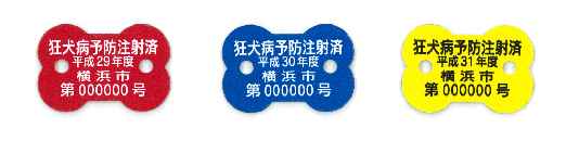 届出をすると、注射済票(色付きの金属プレート)が交付されます。犬の首輪等に着けておきましょう。