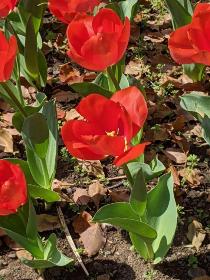 初夏のような陽気の中、たくさんのチューリップが元気に花を咲かせていました。写真から春の訪れを感じてもらえると嬉しいです。特に赤い花がきれいでした。