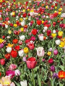 本日は雨かと思っていましたが、青空が見えました。横浜公園のチューリップ は色とりどりきれいです。同じ色の花が咲いている場所もいいですが、色がそれぞれ異なる風景もいいですね。まだ咲いてないお花もありますが、明日からはガーデンネックレス横浜も始まりますので、ぜひお越しください。