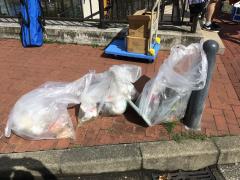 ごみ拾いをして、川をキレイにしました。