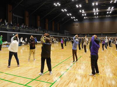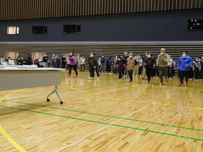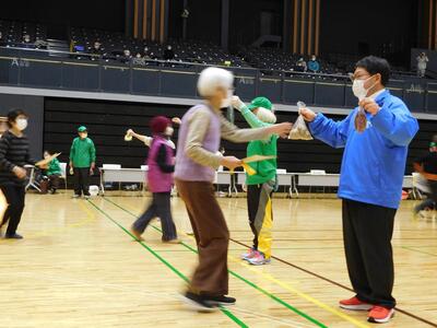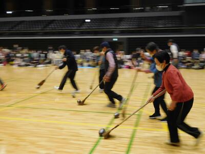 皆さん、スタートの合図で一位を目指して一生懸命走っていて、会場も応援や歓声で盛り上りました。広い会場で楽しく体を動かし、交流を深めました。