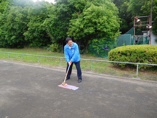 齊藤会長の開会の挨拶の後、小林中区長の始球式でプレーが始まりました。