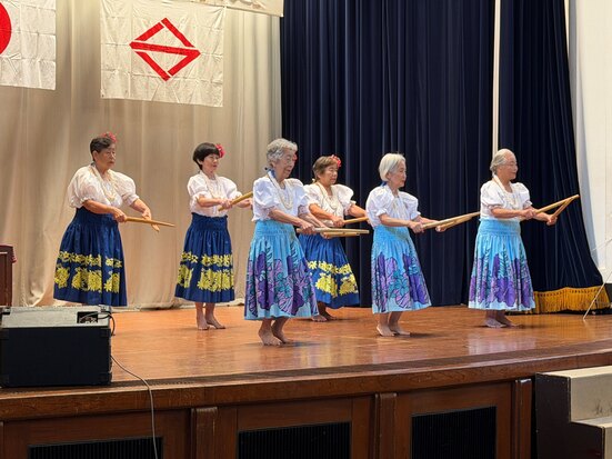 第二部の演芸の部では、フラダンスや、詩吟、三味線演奏など、様々な演目が披露されました。日頃の活動の成果が活き活きと披露され、観客の皆様も一緒になって歌いながら手拍子をするなど、会場全体が盛り上がりました。