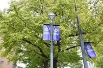 今年も日本大通りイチョウ通信がスタートしました!見ごろが終わるまで、定期的に様子をお伝えするのでお楽しみに。まだ緑の葉が多いのですが、ちらほら黄色く色づきはじめました。横浜DeNAベイスターズ日本シリーズ優勝の特別フラッグが新たに掲出されています。緑・黄・青に彩られた日本大通りをぜひお楽しみください。