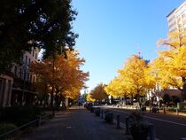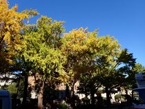 昨夜の雨で、イチョウの葉がじゅうたんのようになっていました。葉はだんだん色づいていて、青い空と黄色や緑の葉のコントラストに、日本大通りを歩いているだけで楽しくなってきます!