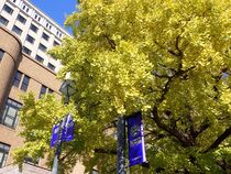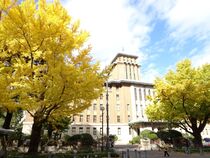 今日はとても気持ちのいい天気ですね。太陽の光を浴びて、イチョウの葉がきらきらと輝いています。日本大通りのイチョウの木は少しずつ黄色の葉が増えてきたところです。これからどんどん色づいていくのが楽しみですね。
