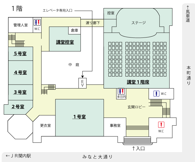 ※車いす・搬入でエレベータをご利用の際は、エレベータ専用入口よりお入りください