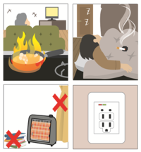 家が火事になったせいで死ぬ人の約70%が、65歳以上の高齢者です。火事になる原因で一番多いのは「こんろの消し忘れ」です。ストーブの周りから火が出ることも多いので、寒くなるこの時期には特に注意しましょう。