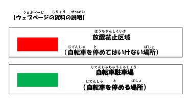 ⇒中区(なかく)で自転車(じてんしゃ)を停(と)めてはいけない場所(ばしょ)(日本語)