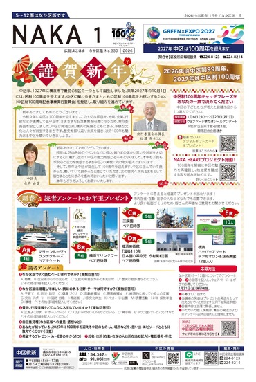 This is a public relations magazine that carries news and event information from Naka Ward Office. It is published monthly for ward residents.