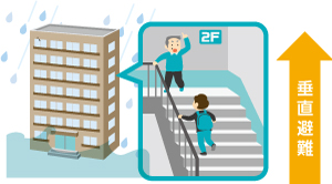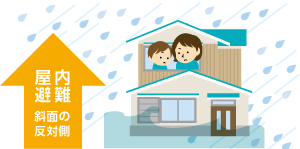 집 밖으로 피난하는 것이 오히려 위험한 경우에는 자택의 윗층 또는 절벽 반대편 등으로 피난
