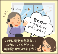 ⇒벌을 자극하지 않도록 하세요. 벌집은 발견되었나요?