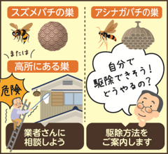 ・쌍살벌의 벌집은 직접 구제할 수 있습니다. 간쿄에이세이가카리(환경위생과)에서 구제 방법을 알려 드리고 방호복도 빌려 드리므로 상담하시기 바랍니다.