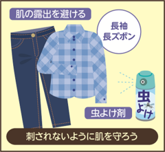 ・모기가 발생하기 쉬운 곳에서는 피부 노출을 피하세요.