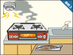 그릴 내의 기름이 연소해 연기가 발생하자 경보기가 울렸다.