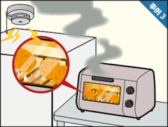 토스터에서 연기가 나서 경보기가 울렸다.