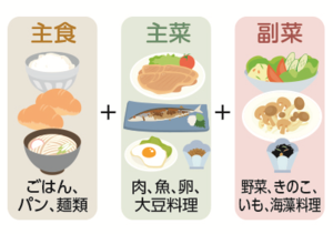 주식, 주반찬, 부반찬을 골고루 먹는다.