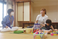 그런 보호자와 자녀들이 지역과 유대감을 느낄 수 있도록 주임 아동위원, 지역 육아 지원자와 함께 부담없이 놀 수 있는 '오야코노히로바(부모와 자녀가 함께하는 놀이터)'를 개최하고 있습니다.