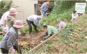 管理位于本牧和田地区护理据点的农园“アメリカ坂ふぁ~む”,开展蔬菜种植活动的地区兴趣小组。约3年前,以在地区护理据点的公告板上张贴通知进行招募为契机,成员们汇聚而来,之后逐渐确定了种植的蔬菜的种类、农园的名称及会章等。还利用收获的蔬菜,与附近的幼儿园的孩子们一起举办咖喱聚会等。地区的纽带从农园开始逐步扩展。