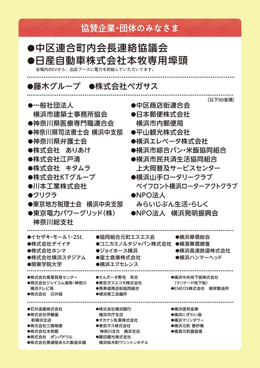 中区民祭り「ハローよこはま2023」へご協賛いただいた企業・団体のみなさまです。
